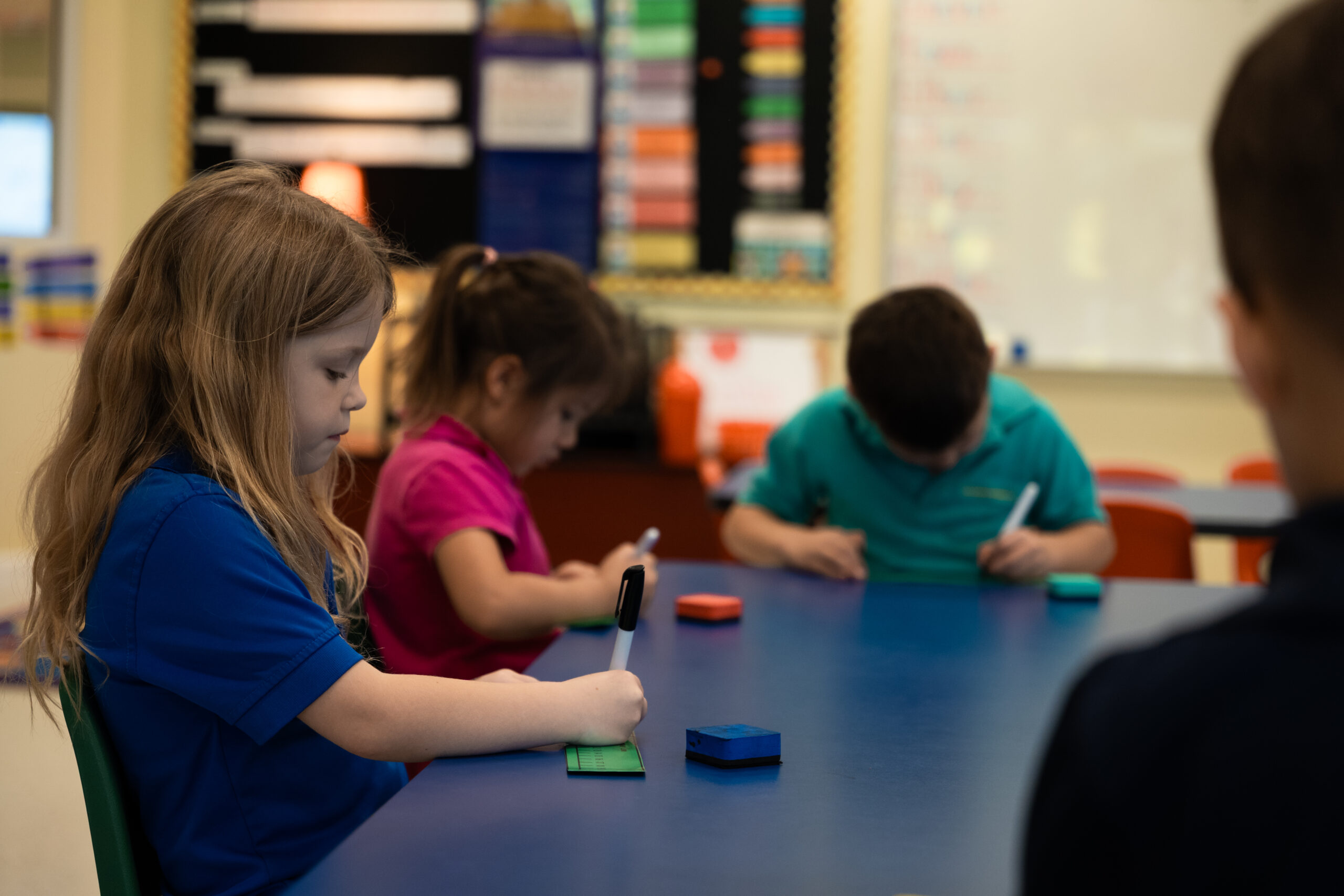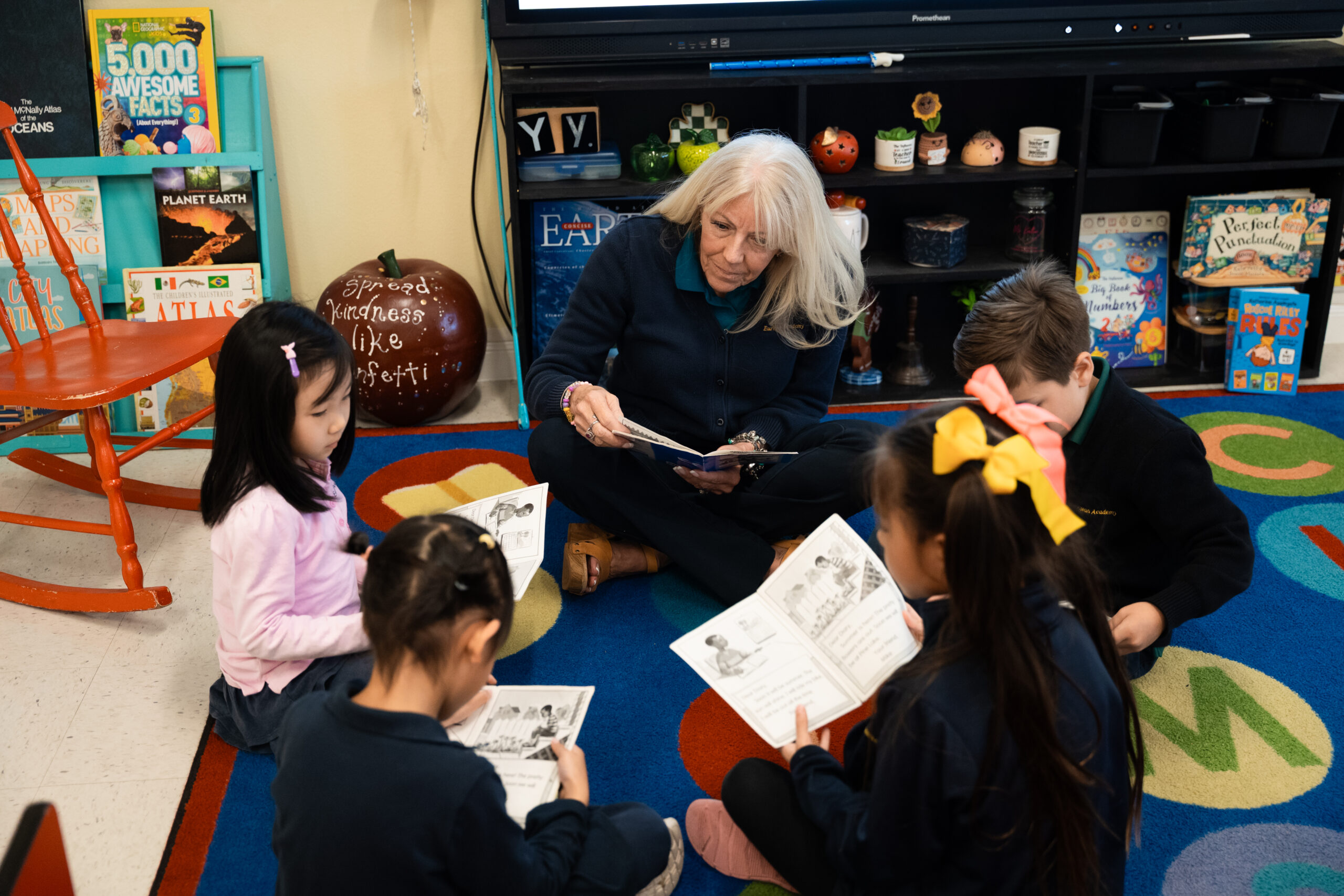 We offer an accelerated kindergarten program. The curriculum is well-rounded to include the disciplines of language arts, math, science, and social studies. A strong literature-based curriculum and phonetic awareness form the foundation of language arts where students read at a first and second grade level.