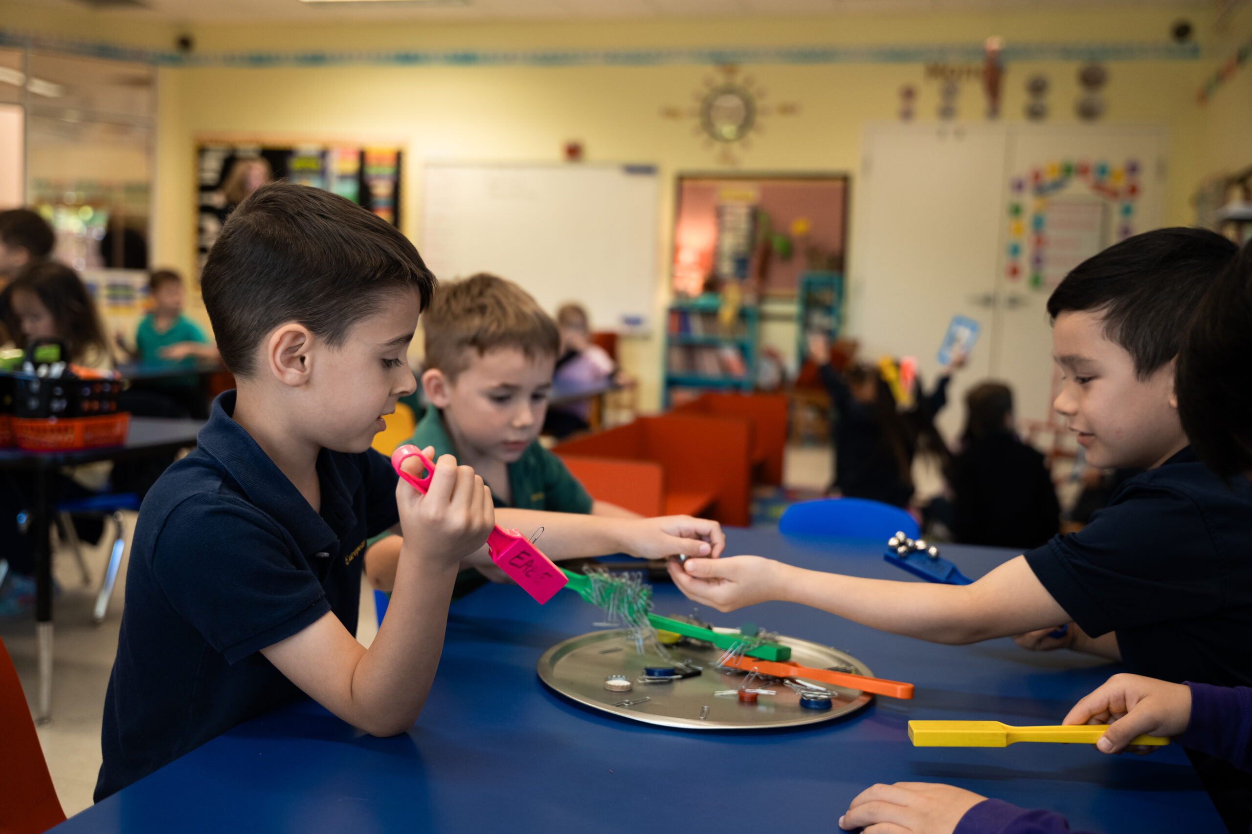 Writing, illustrating, graphing, charting, measuring, counting, time, fractions, and money are just some of the concepts taught. Kindergarten students also have classes in art, dramatic expression, music appreciation, Spanish, etiquette, and physical education.